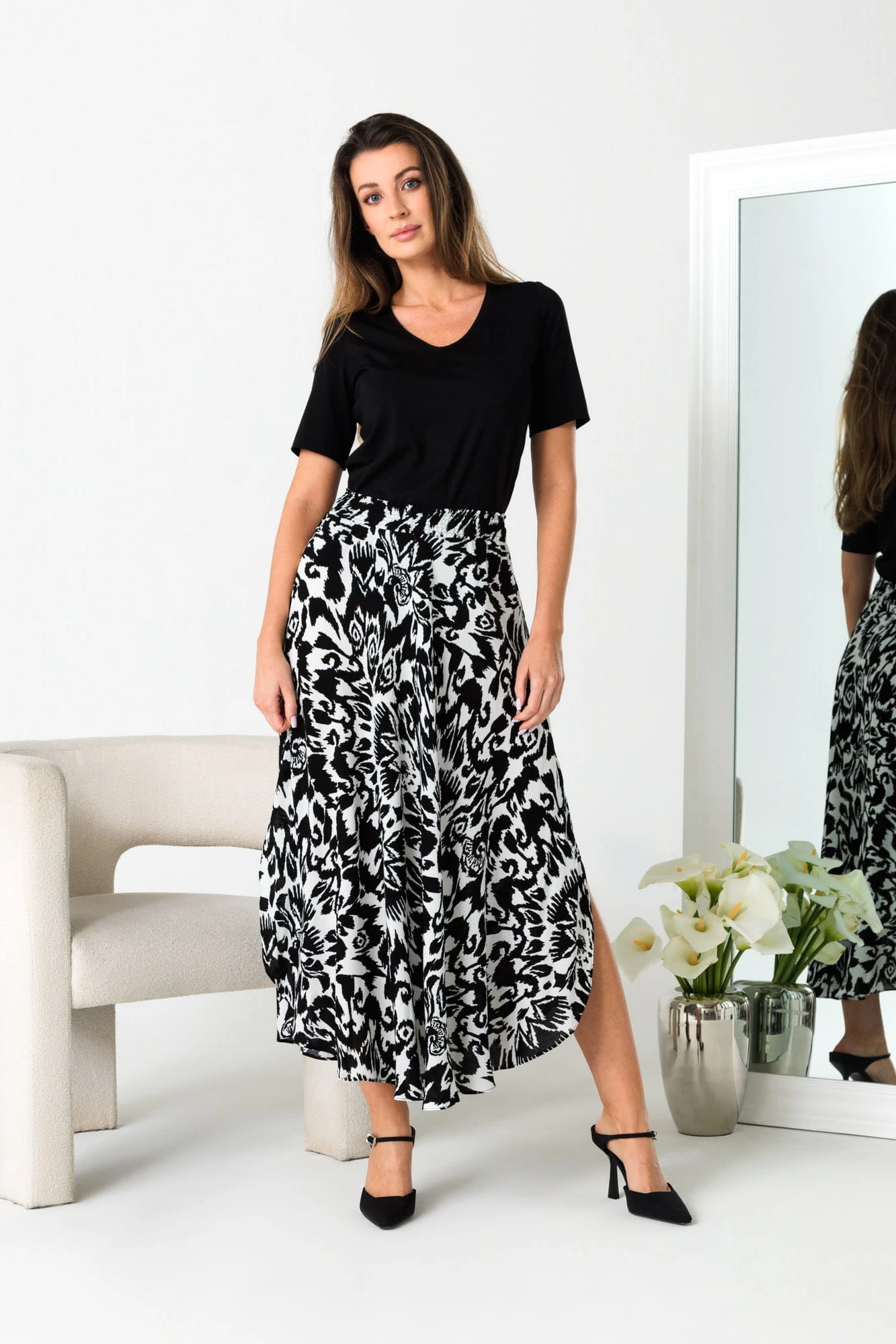 Czarna bluzka z miękkiej, przyjemnej w noszeniu dzianiny wiskozowej typu modal. Model top dopasowany jest do sylwetki. Krótki rękaw. Dekolt w kształcie V ładnie wysmukla szyję.