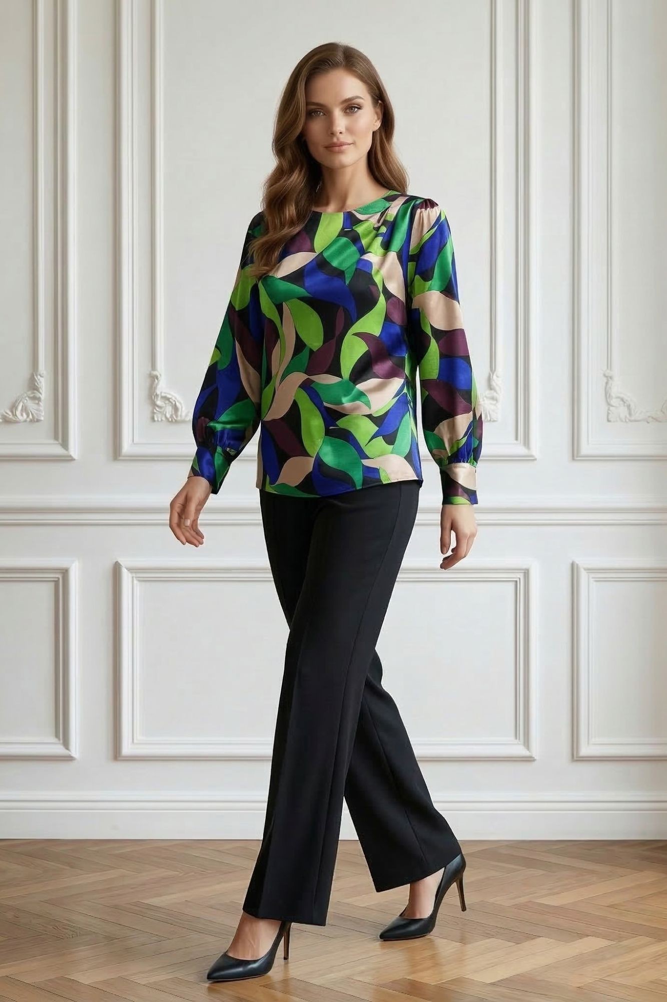 Bluzka sprawdzi się wszędzie tam, gdzie elegancja ma iść w parze z wygodą. Dzięki wyrazistemu wzorowi i szlachetnemu połyskowi wiskozy świetnie odnajduje się zarówno w stylizacjach codziennych, jak i bardziej wyrafinowanych.