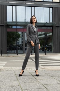 Do marynarki zostały uszyte również spodnie(klik) z tej samej tkaniny, o klasycznym kroju. Całość tworzy elegancki garnitur, który można potraktować jako stylizację biurową oraz na spotkanie służbowe
