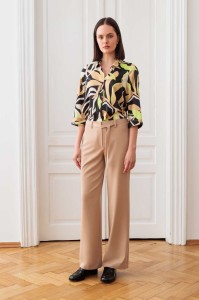 Spodnie te świetnie sprawdzą się zarówno na co dzień, jak i podczas bardziej formalnych okazji – wystarczy dobrać odpowiednią górę, np. klasyczny żakiet uszyty z tej samej tkaniny w pasującym kolorze (klik) oraz dodatki. W codziennych stylizacjach z tym modelem spodni sprawdzi się kolorowa koszula co nada wyrafinowanego stylu (klik), wpuszczona częściowo w spodnie, buty na płaskiej podeszwie, a dopełnieniem całości - delikatna biżuteria w złotym kolorze