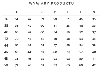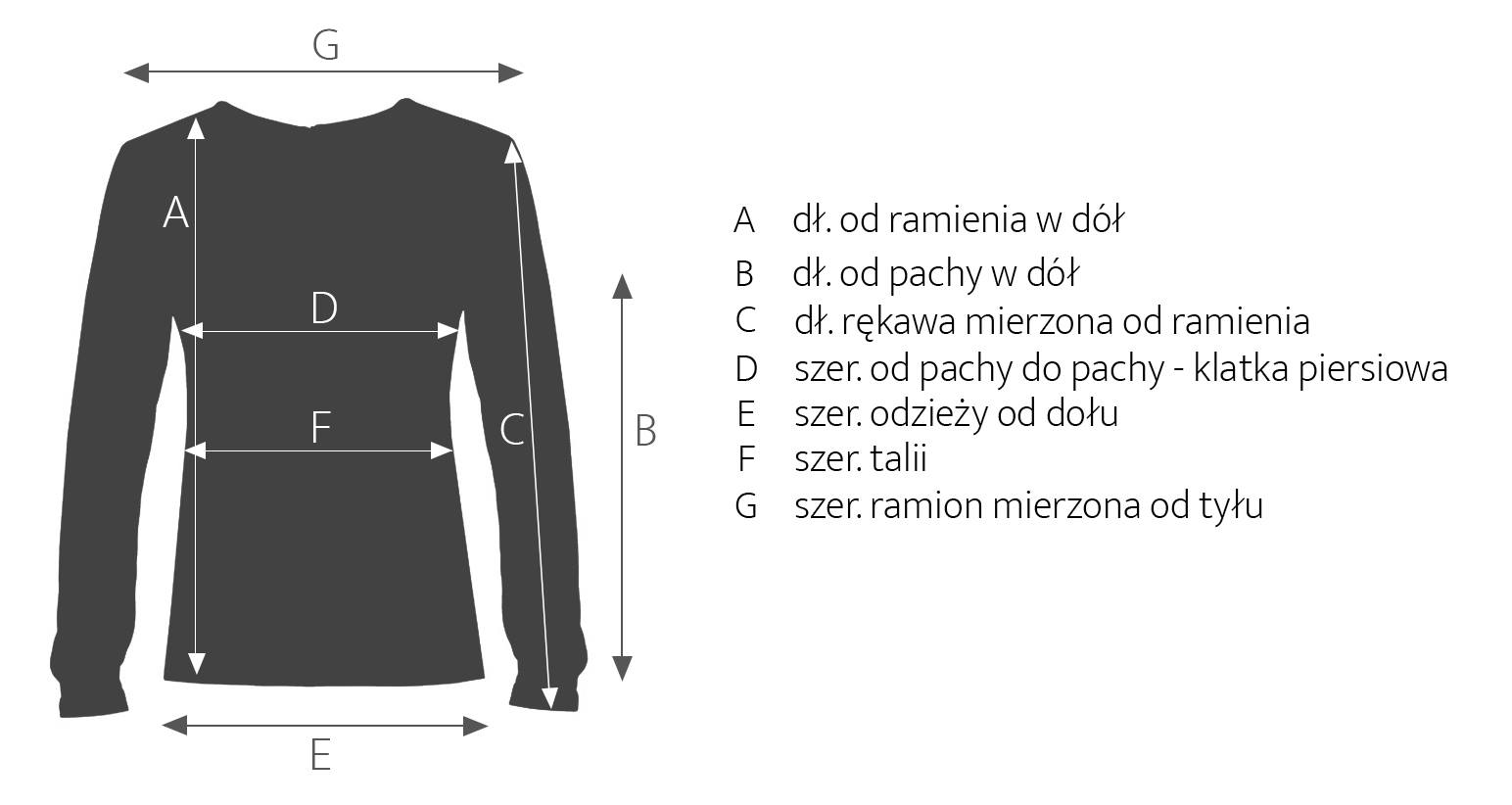Aby dobrze dobrać swój rozmiar zmierz swoje ubranie (także ułożone na płasko) i porównaj z wymiarami zamieszczonymi w tabeli.