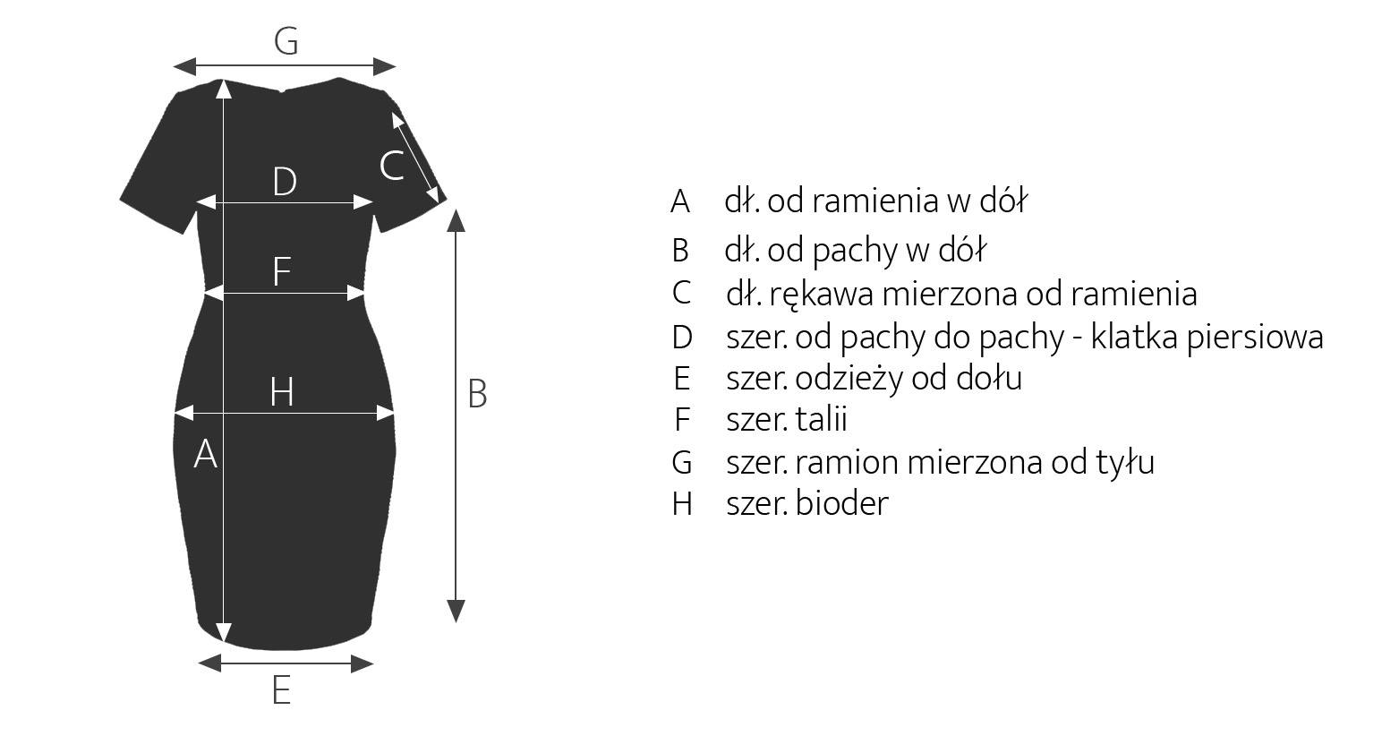Aby dobrze dobrać swój rozmiar zmierz swoje ubranie (także ułożone na płasko) i porównaj z wymiarami zamieszczonymi w tabeli.